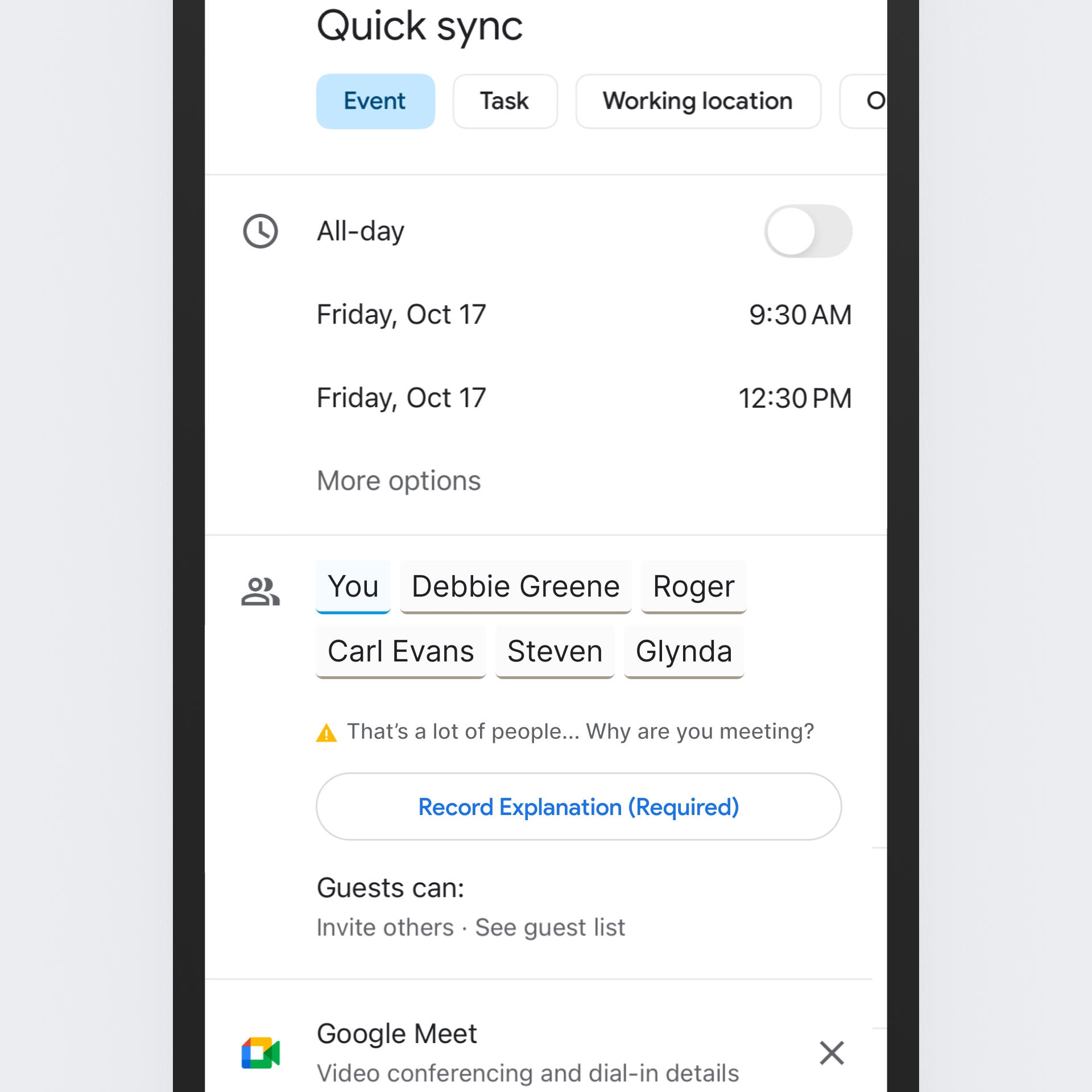 - Google Calendar meeting rationale