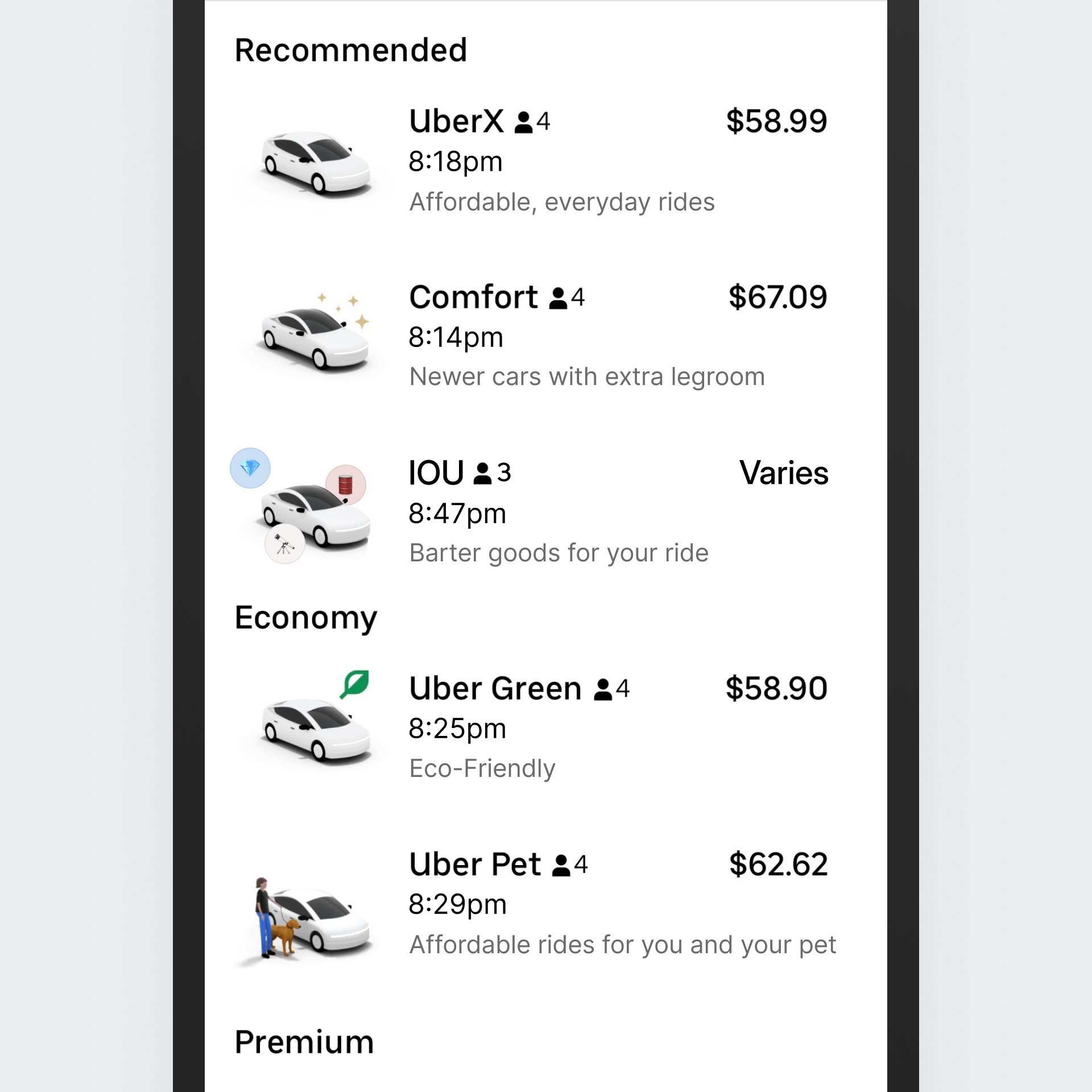 Looking at the overall costs got me thinking about alternative approaches. What if there were a way to book a ride with a formal “IOU” agreement, which you could pay back upon arrival? This is partially born out of a story where my friend’s dad (a cab driver) ended up getting paid with a Rolex because his passenger didn’t have any money on him and was too inebriated and affluent to care.